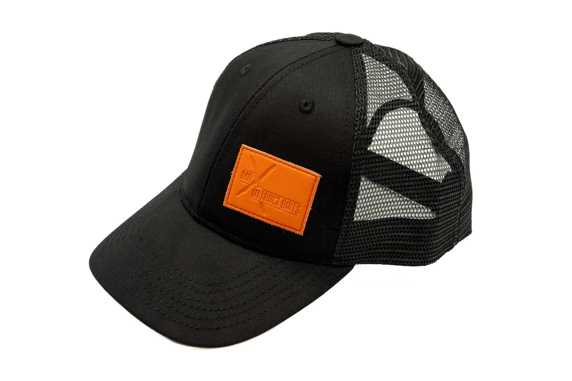 The Max Attract Baits Truckers L.S Cap, very hard wearing full black truckers cap with netting to the rear and branding etched on a treated leather patch to the front, giving you a real bank side look. A one size fits all with an adjustable back strap.